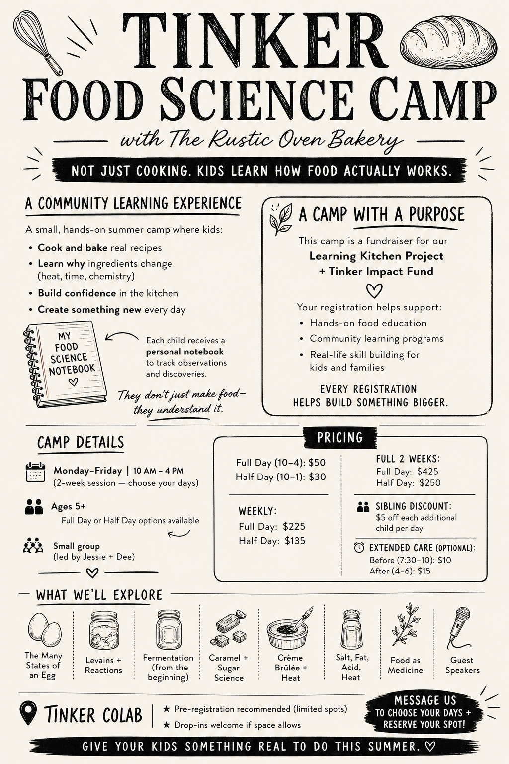 πΏ This camp is also a fundraiser for our Learning Kitchen Project and Tinker Impact Fund.